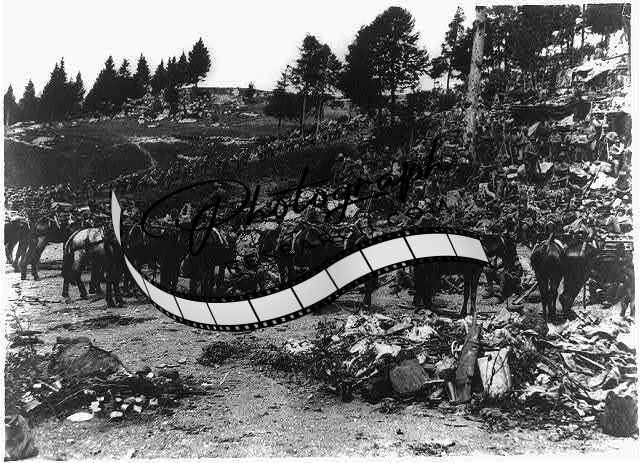 Italian troops,rest,elevated plain,infantry,horses,movement,soldiers,march,1916