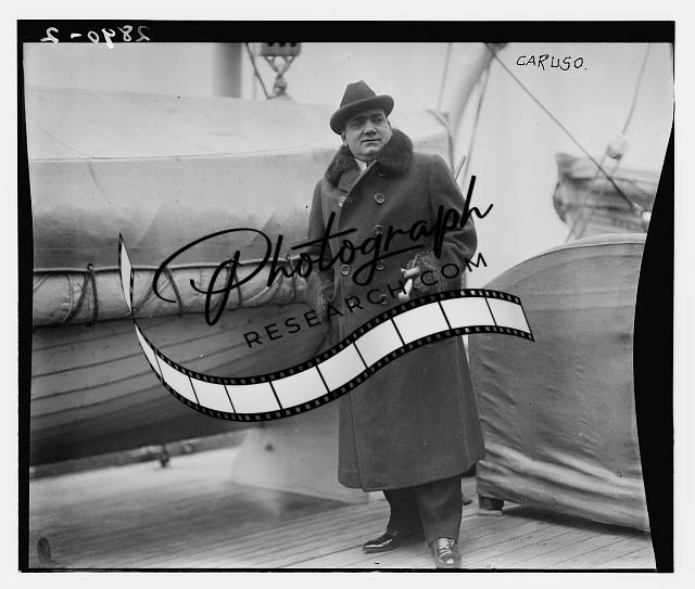 Enrico Caruso,1873-1921,Italian tenor,Opera singer,in coat,on boat