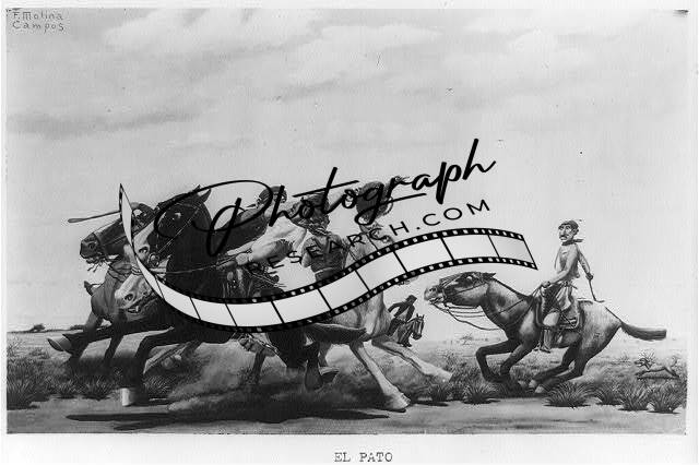Pato,horseback,grab,duck,basket,riding,gauchos,Argentina,F Molina Campos,c1949