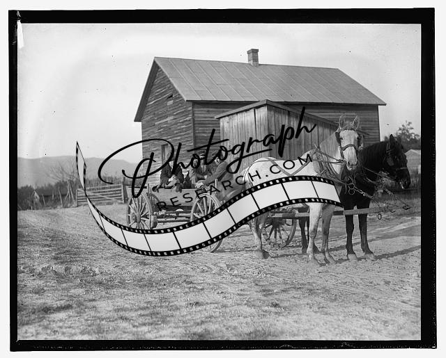 Three people in horse drawn wagon,Transportation,1909-1932