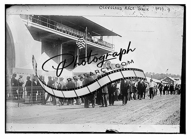 Cleveland Race Track,crowd of people,American flag,Bain News Service