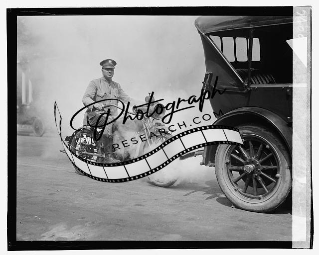 Police on motorcycle trailing car with smoke,9/1/23,September 1923
