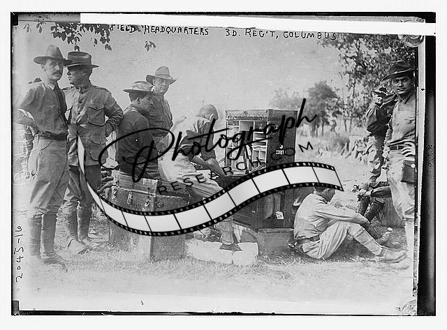 Field Headquarters,3rd Regiment Columbus,man at desk in field,Bain News
