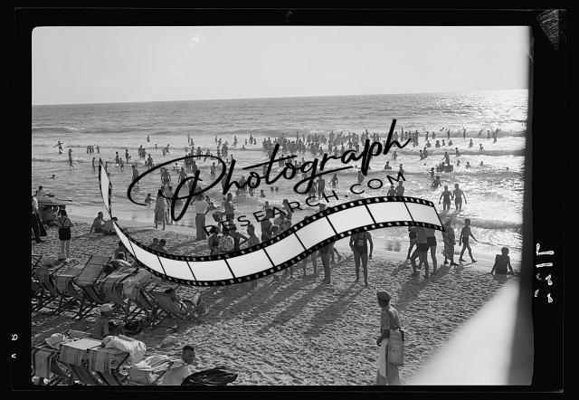 Crowded beach,Tel Aviv. Looking seaward,Israel,Middle East,American Colony