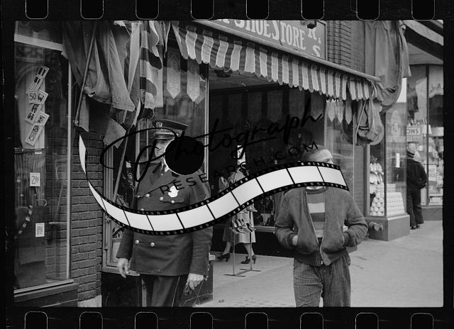 Policeman talking with group of men,South Omaha,Nebraska,NE,November 1938