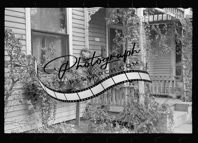 Lady tending her flower box,Omaha,Nebraska,NE,November 1938,John Vachon,FSA