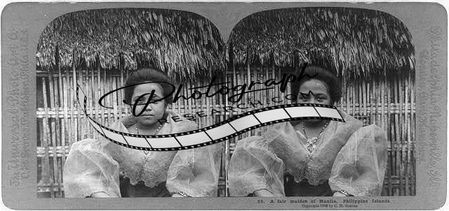 Manila,Philippine Islands: A fair maiden of Manila,c1902,thatched-roof house