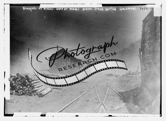 Burning,miner's camp,Forbes during strike battle,Colorado,1914,Ludlow Massacre