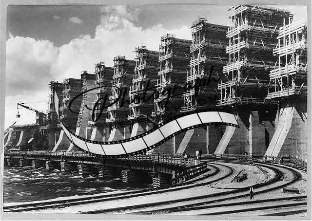 Dnieperstrai Dam,Russia,Workers on large Sluiceway,construction,building