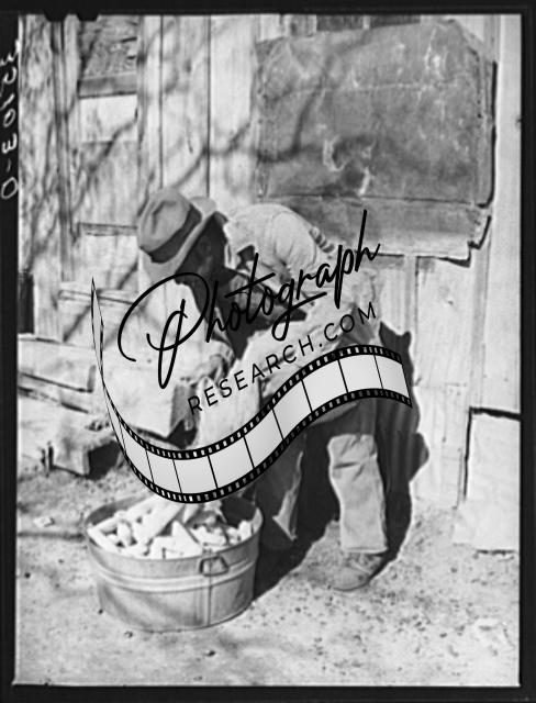 Title: Wife of Pomp Hall, Negro tenant farmer, preparing lunch for her children to take to school. Creek County, Oklahoma. See general caption number 23