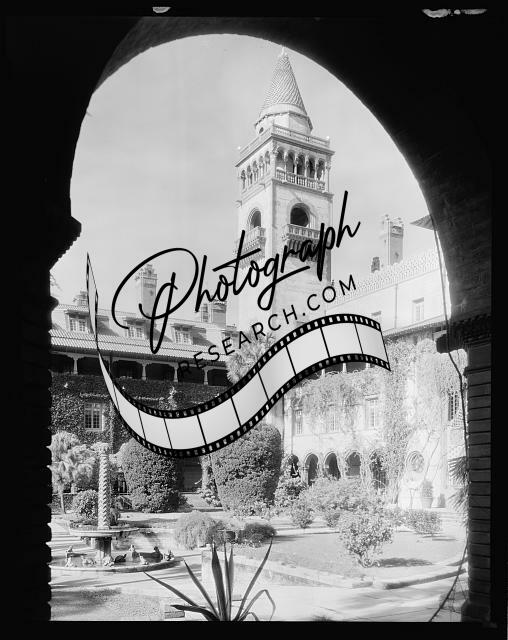 Ponce de Leon Hotel,fountain,arcade,Saint Augustine,St Johns County,Florida,1936