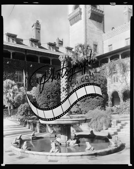Ponce de Leon Hotel,fountain,plants,Saint Augustine,St Johns County,Florida,1936