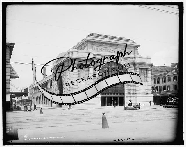 Terminal station,railroad buildings,streets,roads,New Orleans,Louisiana,LA,1900