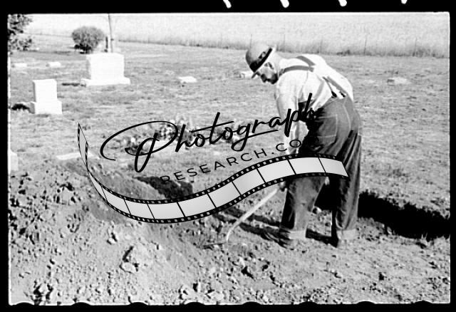 Grave digger at work,Woodbine,Iowa,IA,May 1940,John Vachon,FSA,Cemetery
