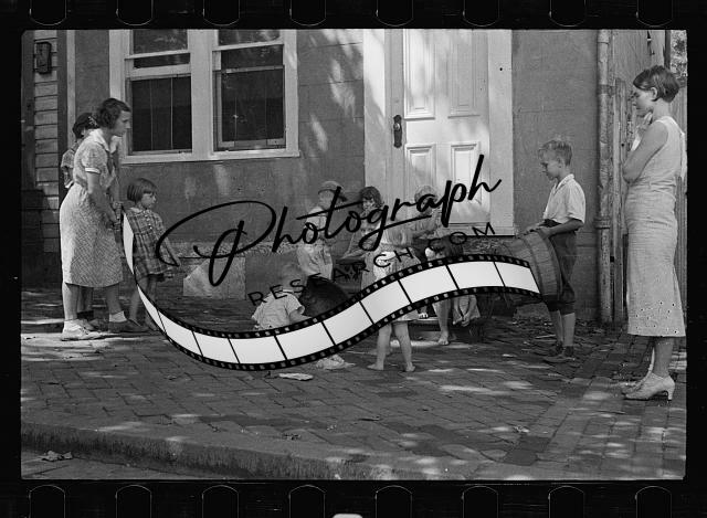 Poor white children playing,sidewalk,buildings,Georgetown,Washington DC,1935 3