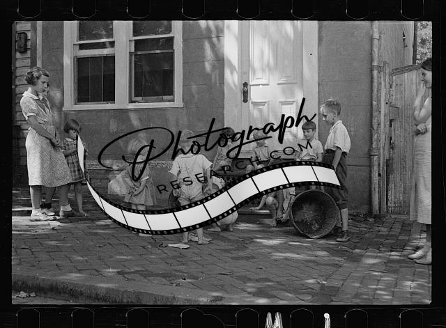 Poor white children playing,sidewalk,buildings,Georgetown,Washington DC,1935 4