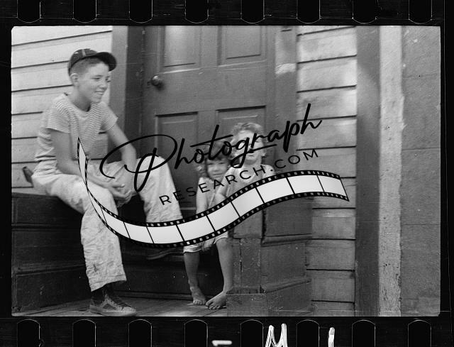 Poor white children playing,sidewalk,buildings,Georgetown,Washington DC,1935 2