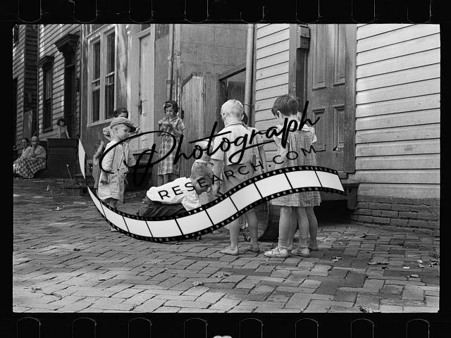Poor white children playing,sidewalk,buildings,Georgetown,Washington DC,1935 1