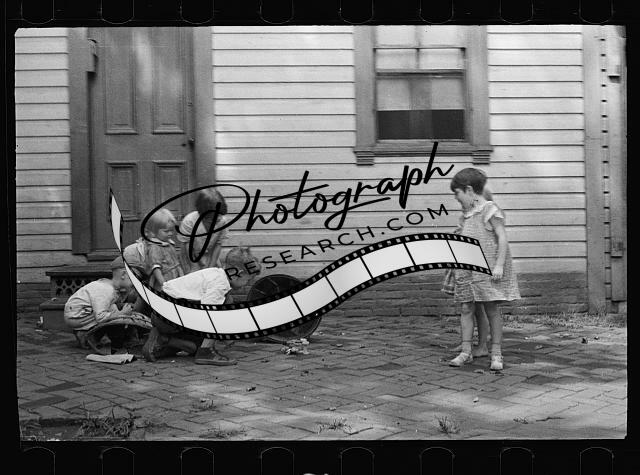 Poor white children playing,sidewalk,buildings,toy,Georgetown,Washington DC,1935 4