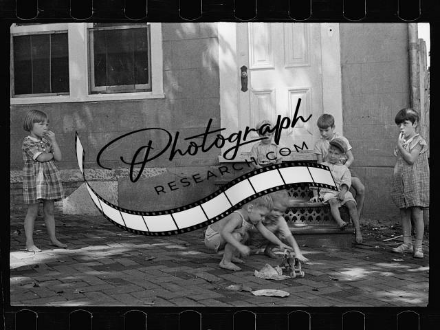 Poor white children playing,sidewalk,buildings,Georgetown,Washington DC,1935 7