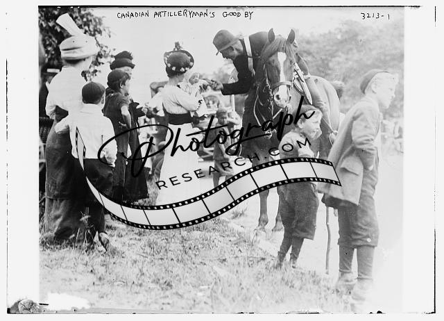 Canadian Artilleryman's Good-bye,Women,Children,man on horseback,baby