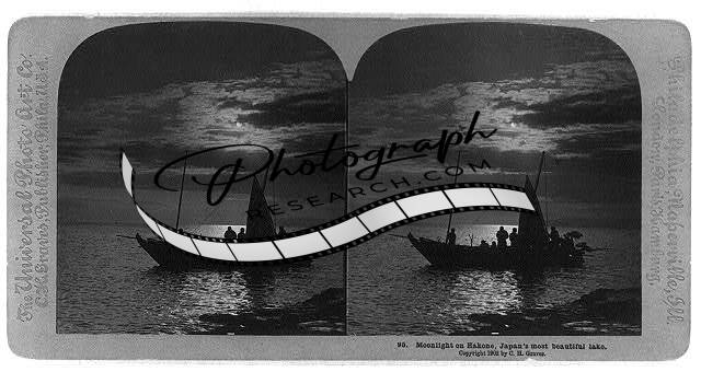 Photo of Stereograph,Moonlight,Hakone,Japan's Most Beautiful Lake,c1902,Boat