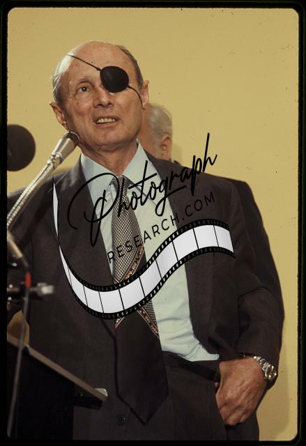 Moshe Dayan, half-length portrait, standing at podium