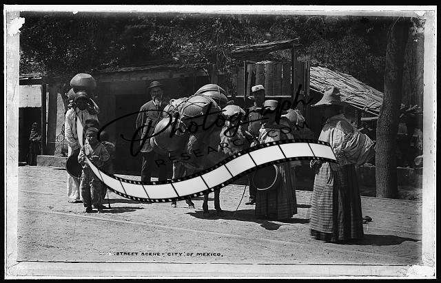 Street scene,donkeys,peddlers,commerce,burros,vendors,roads,Mexico City,1880