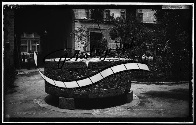 Sacrificial stone,Aztec,spiritual life,carvings,buildings,roads,Mexico City,1880