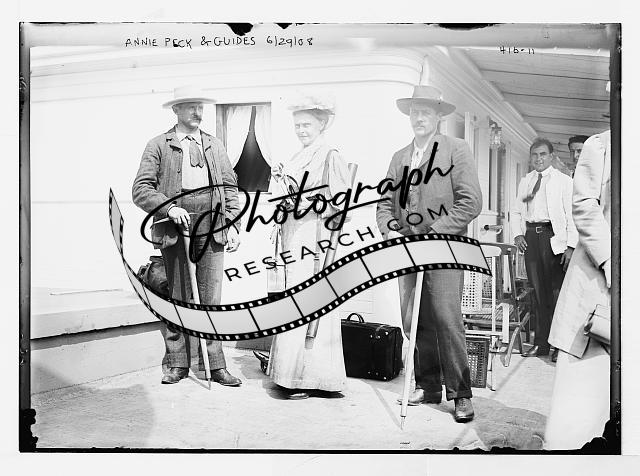 Annie Smith Peck,1850-1935,American mountaineer,two guides,on boat deck
