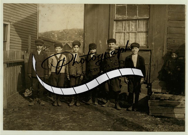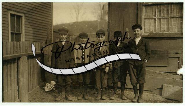 Title: All work in Ewen Breaker, Pennsylvania Coal Co. (see photos taken at breaker later). Philip Kurato (on left end of photo) 177 So. Main St., Pittston, Pa. Working in breaker for 6 months, said he was 12 years old, but doesn't appear to be that. Told the school Principal the other day he was 13 years old. Jo Tabone (middle) 141 Thompkin St., benn [i.e., been] working three years in Ewen Breaker. Said 14 years old but doesn't appear to be. Charlie Bootha (right-end) said he was 12 years old. Works at Ewen Breaker. Lives in Sebastopol. Couldn't spell his own name and didn't know name of street he lives on. Seems to be under 12 years old. All were suspicious of my sending them to school. Philip Kurato's step-mother told me (through an interpreter) that he has a birth certificate showing him to be 13 years old; that he has been working in the breaker for two years - and that Squire Barrett gave him his working papers. The step-mother owns a home near by, said to be worth $1,500. Location: Port Griffith, Pennsylvania.