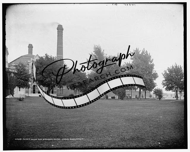 Power house,grounds,Water Works Park,buildings,trees,Detroit,Michigan,MI,1890