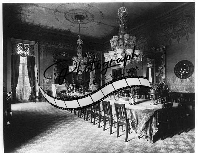 White House,State Dining Room,tables,chairs,chandlier,curtain,Washington DC,1890