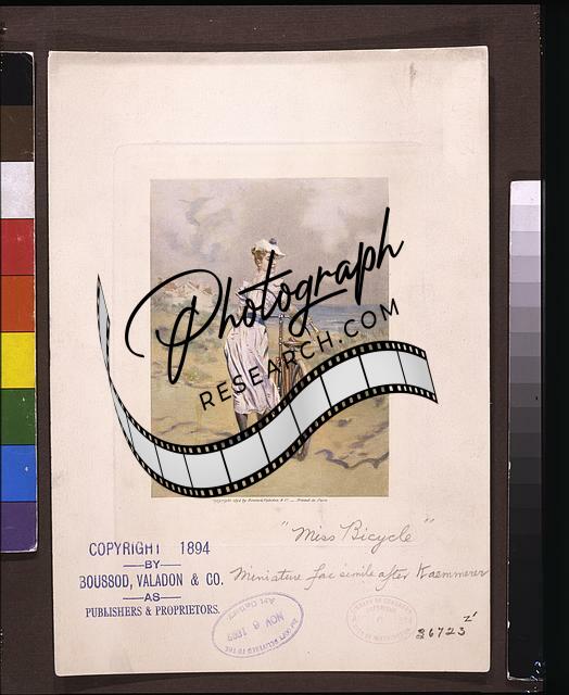 Miss Bicycle,young woman walking bicycle through sand dunes,c1894,Boussod