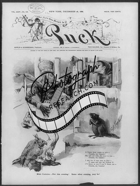 Miss Canada,Cartoon,Uncle Sam,Banjo,Puck,1888,singing