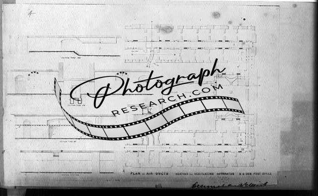 Plan of air ducts,heating,ventilating apparatus,US General Post Office?,c1855