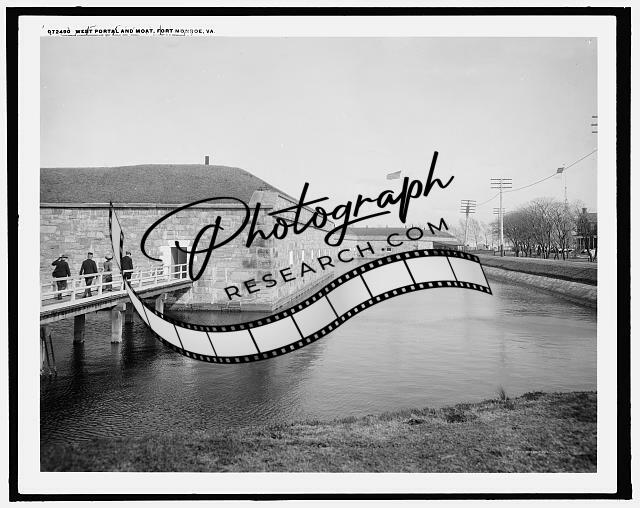 West portal,moat,buildings,Fort Monroe,Virginia,VA,Detroit Publishing Co,c1910