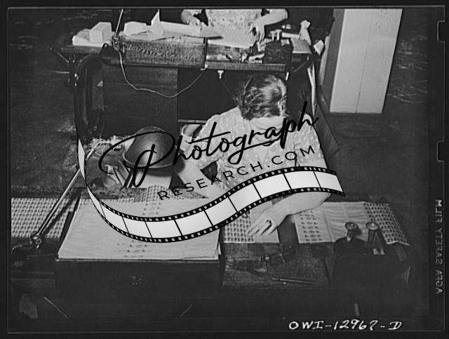 Title: Washington, D.C. Siderographer transferring stamp image from the die to the plate at the United States Bureau of Engraving and Printing