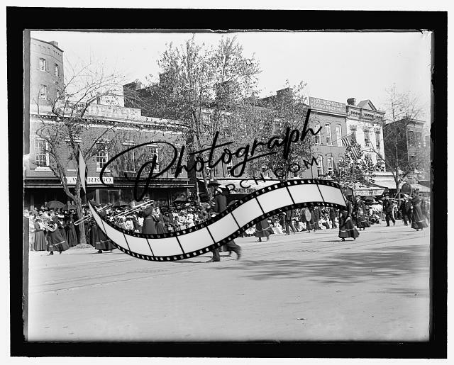 Brass band,women,heading,posts,marching,parade,commemorations,ceremonies,1902
