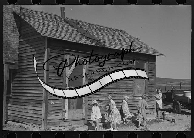 Children in front of Olaf Fugelberg's farmhouse. Williams County,North Dakota