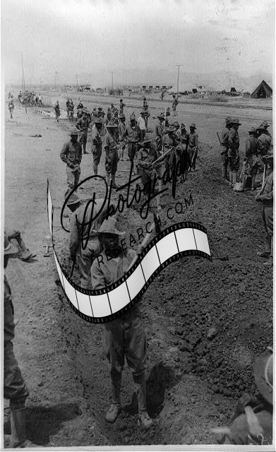 US troops,black soldiers digging,ditch,rain water,flow off,Army,Mexico,c1916