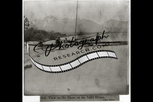 View on the Shore,at the Lake House,Lake Tahoe,Sierra Nevada,1866,people