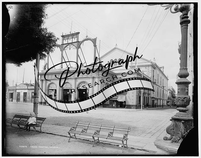 Tacon Nacional Theatre,theater,buildings,roads,benches,Havana,Habana,Cuba,c1900
