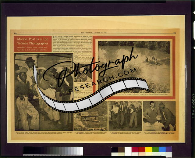 Black cotton pickers waiting,pay line,people fishing,cabin,Marion P Wolcott,1941