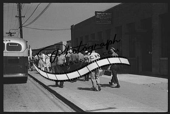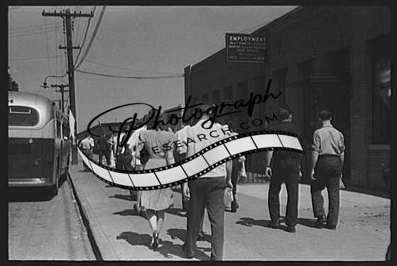 Title: Workers entering plant at afternoon change of shift. Pratt and Whitney plant, United Aircraft, East Hartford, Connecticut