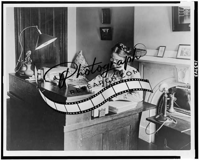 Miss Mary F Beard,offices,desks,female employment,fireplaces,work,seated,1900
