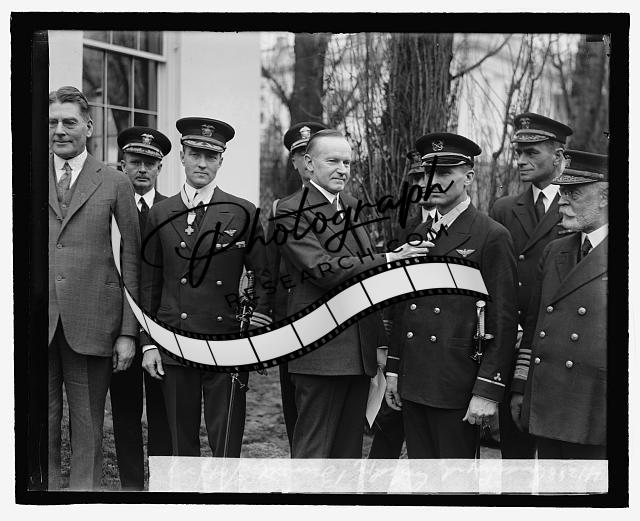 Coolidge confers Cong. Medal on Comdr. Byrd & machinists flag of Bennett,3/19/27