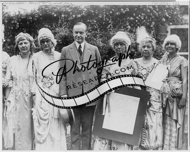 President Calvin Coolidge receiving book,Mackinac Island,Mrs WW Wittinghill,1923