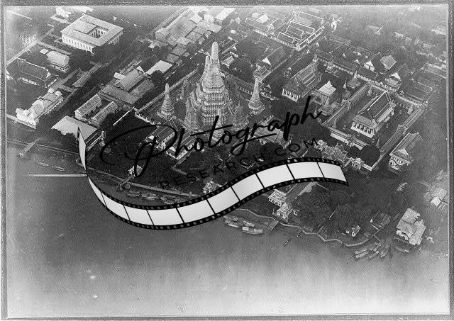 Aerial view of Wan Aroon in Siam,ornate palace,1920s,Thailand