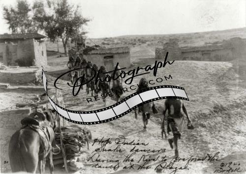 Hopi Indian snake dancers leaving kiva to preform dance at plaza,c1921,painted?
